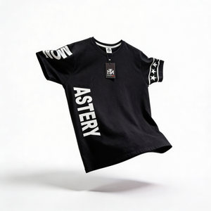 Camiseta negra de estilo urbano con estampado tipográfico lateral que aporta un look moderno y llamativo. Confeccionada en tejido suave y transpirable para brindar comodidad durante todo el día. Su corte clásico facilita combinarla con diferentes prendas, convirtiéndola en una opción versátil ideal para outfits casuales o streetwear en cualquier ocasión.